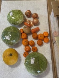 ありがとうございます。困窮世帯に配布します。特にキャベツは貴重です。