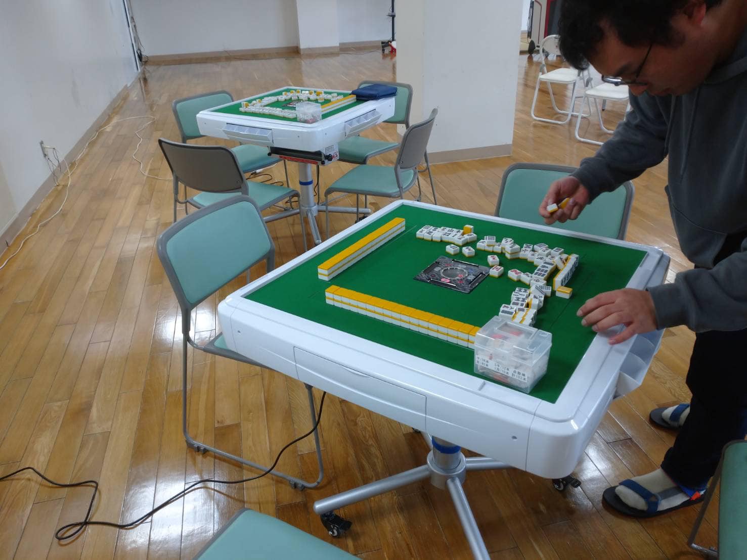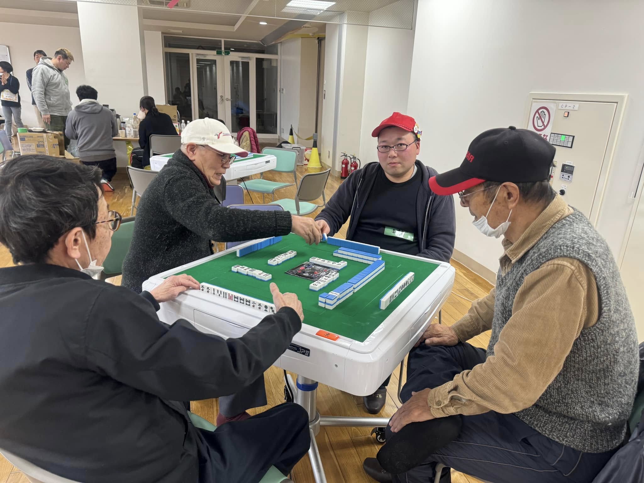 マージャン卓は石川県が貸与してくださっています。皆様思いっきり、しゃべって、笑って、楽しんでくださね。