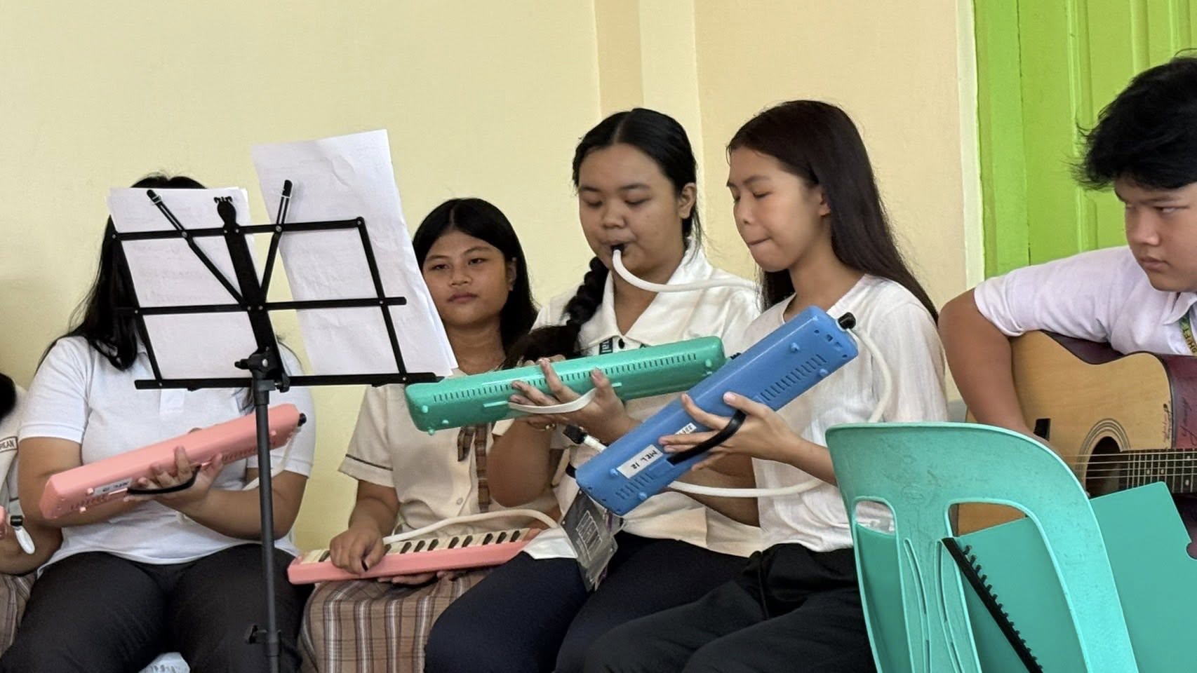 ②グリーンウインドの奥平さんがラスピニャス高校に贈ったピアニカで音楽部の学生が素晴らしい演奏をしてくれた。支援者の皆様ありがとうございます。続けてご支援をお願い致します。