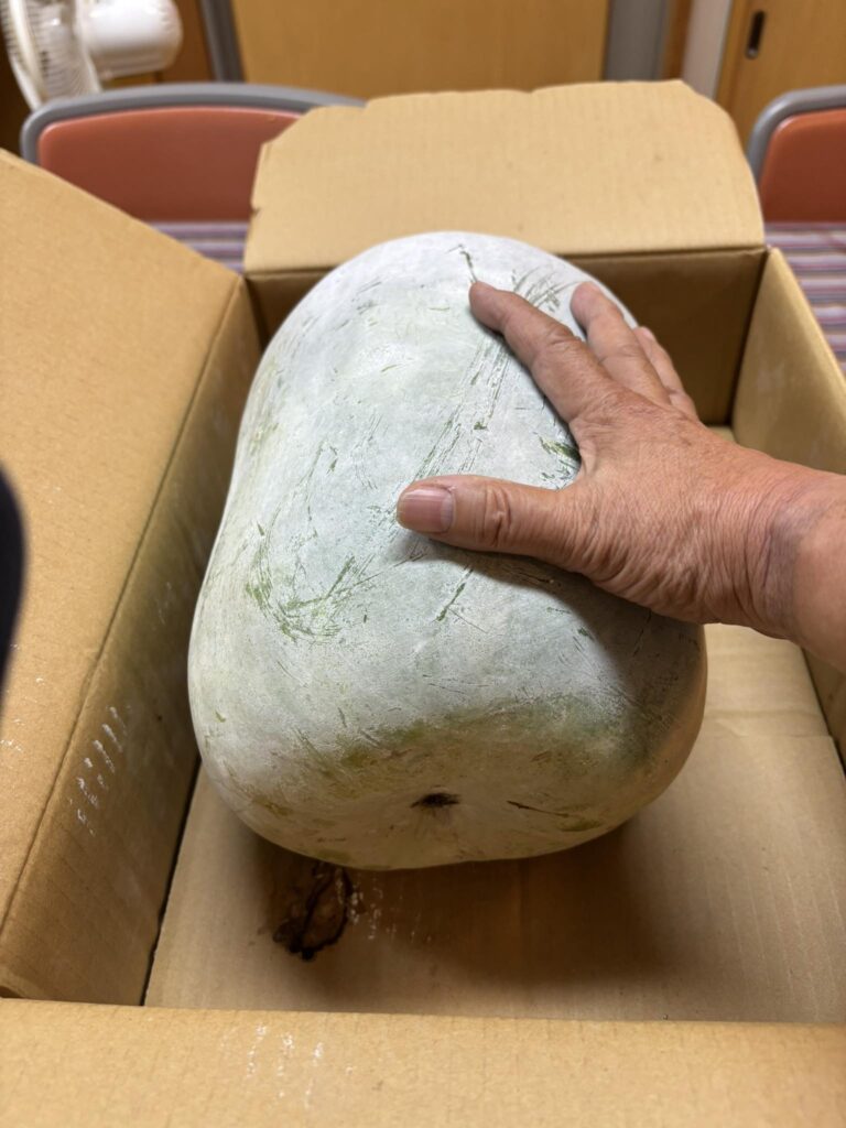 大きな冬瓜をいただいた。煮ても美味しい、味噌汁に入れても美味しいです。支援者に感謝します。 -